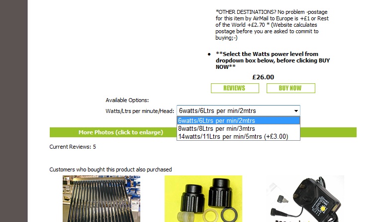 Atradu ebay tādu pašu sūkni kā Solar Project piedāvā, tikai pa daudz mazākām naudiņām. Pamēģināšanai doma nopirkt, bet ir viens bet... ir divu jaudu sūkņi, viens kurš barojas no 12 V un spēj pārsūknēt 6,5 L/min līdz 3 metru augstumam, un ir otrs kurš barojas no 24 V un spēj pārsūknēt 10 L/min līdz 5 metru augstumam. Jautājums ir par to, vai mājbrūvētājam ar vārīšanas apjomu līdz 50 litriem ir vajadzīgs dārgākais un jaudīgākais 24 V sūknis, jeb var iztikt arī ar 12 V . It kā jau starp viņiem cenu starpība ir ~ 3 GBP, tikai 12 V pārveidotāji man ir, bet 24 V jāpiepērk un tas argusā maksā ap 8 Ls.