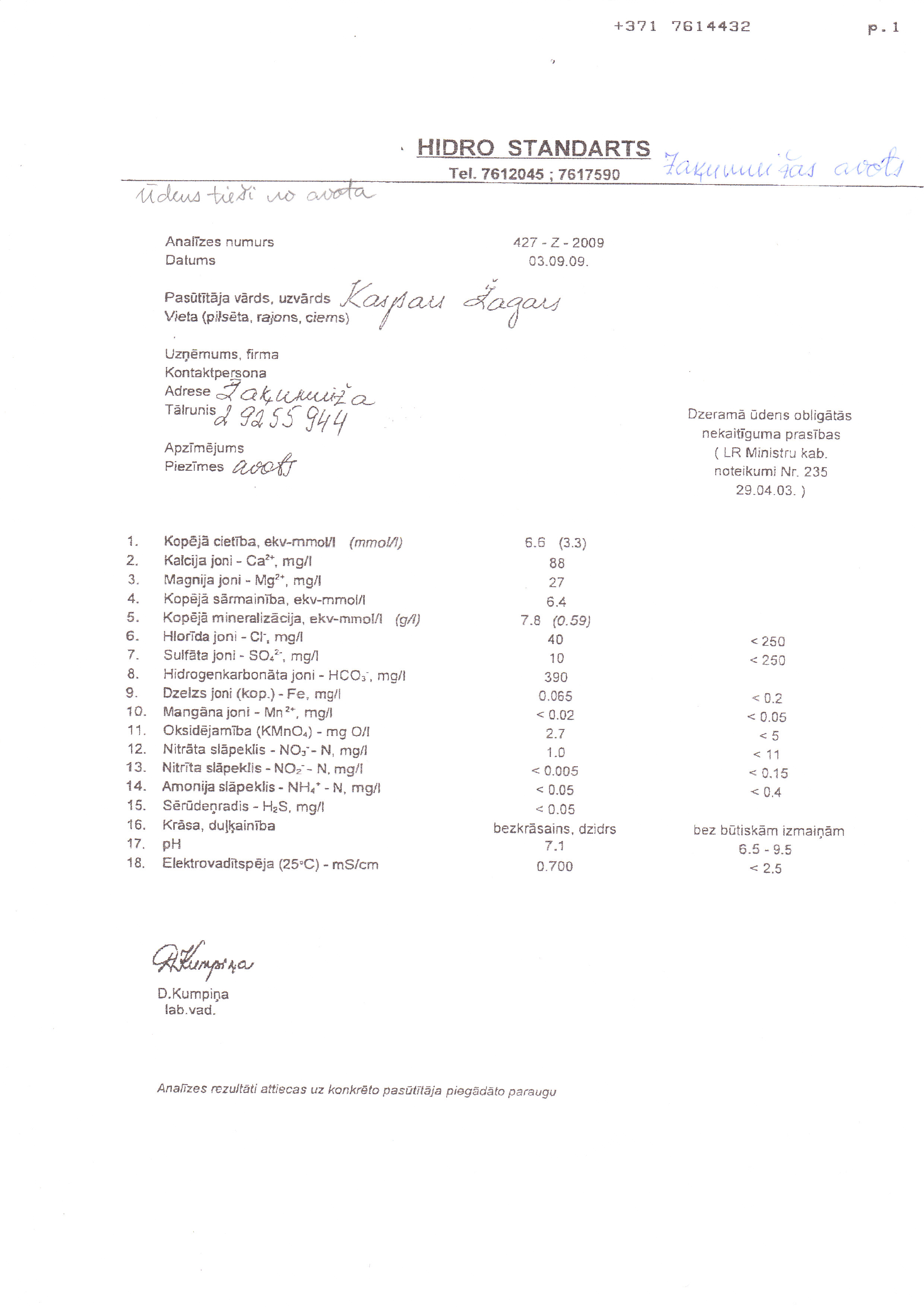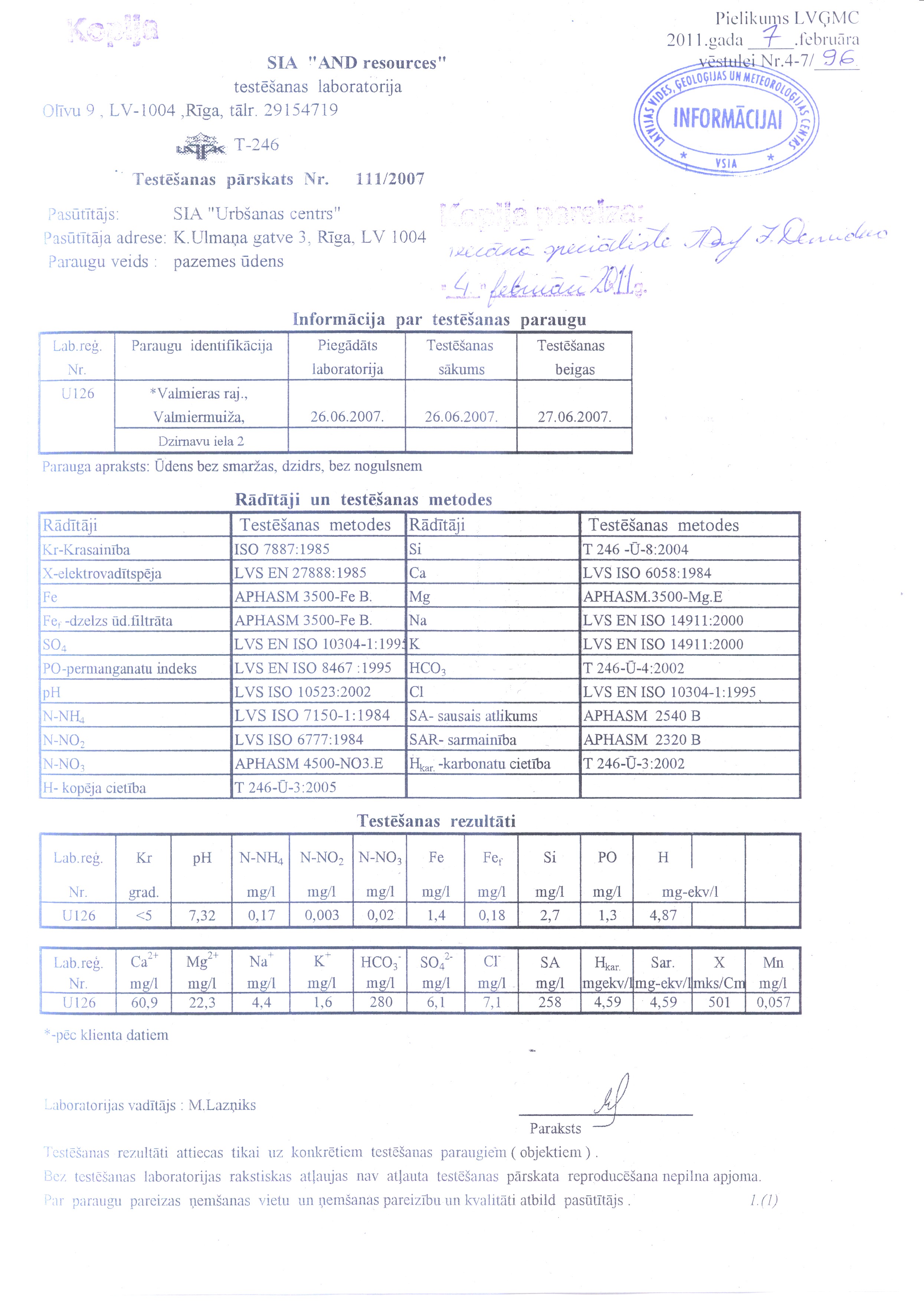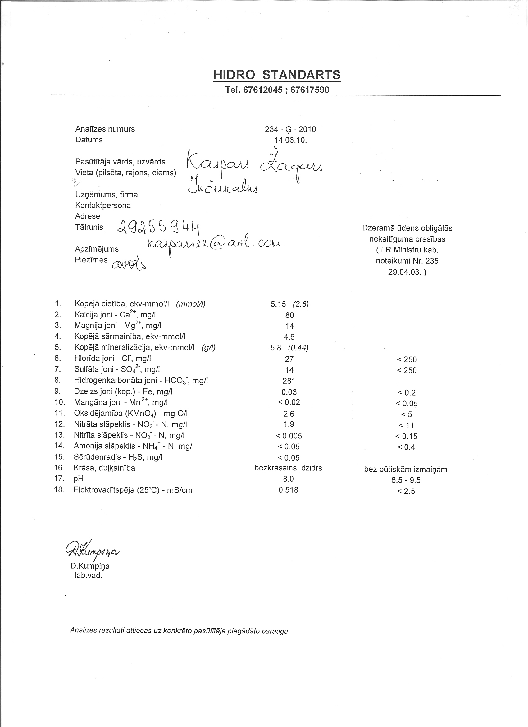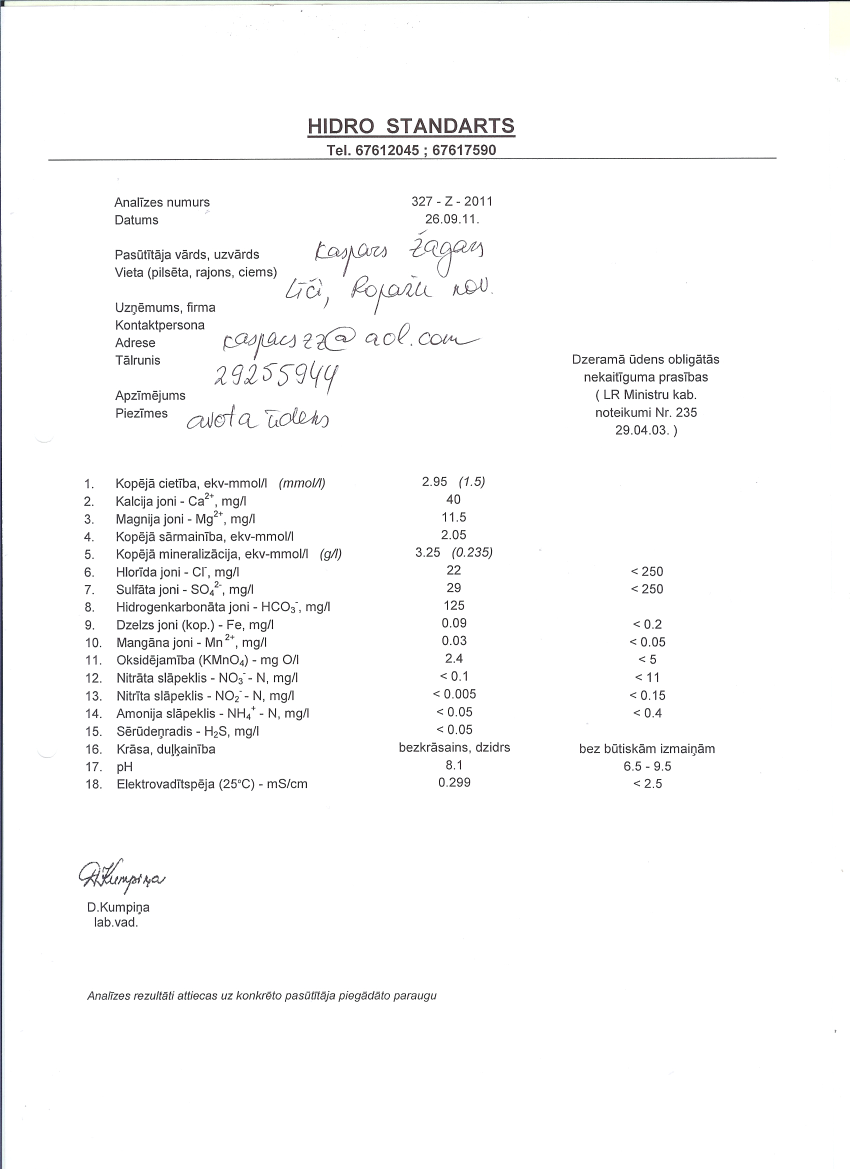 Nav jau man ar ko diži lielīties, bet pieliku visas man pieejamo un manā ikdienas maršrutā man zināmo avotu ūdens analīzes.