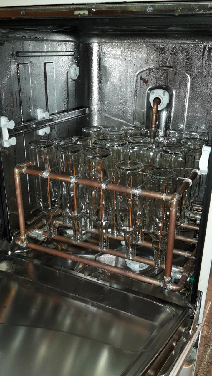 Bet pudeļu mazgāšana (tāpat, kā pie alus brūvēšanas) šajā procesā bija tā netīkamākā daļa. Man vēl iesākumā daļa pudeles bija, kur vīns bijis iekšā un rauga dūmaciņa iekšpusē. Birštēju, mērcēju, iemēģināju arī aku.urbmašīnu, bet nu neradās tā sajūta, ka ir atrasts risinājums.